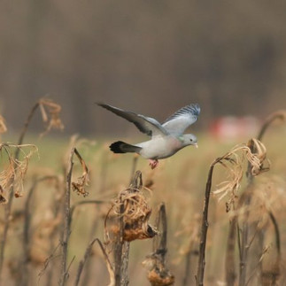 Naast zangvogels zat er ook een enorme groep van 120 holenduiven en soms een verdwaalde postduif. Het was een prachtig gezicht als alle holenduiven tegelijk opvlogen! Door de zwarte rand om hun vleugels en het gelige landschap ontstond er soms een soort van optisch bedrog.